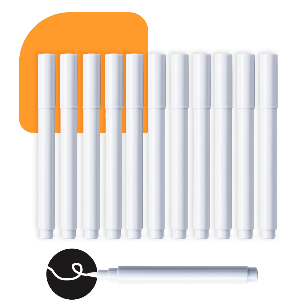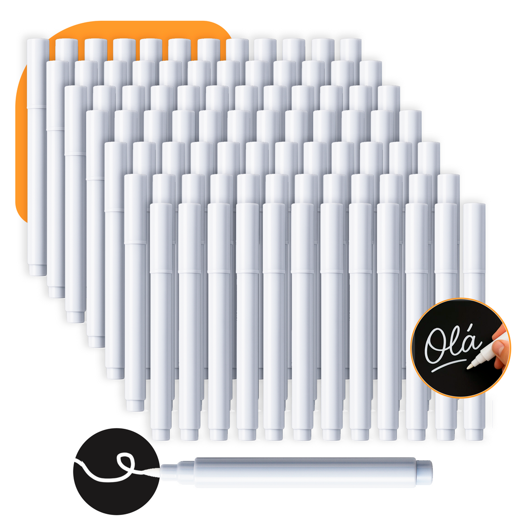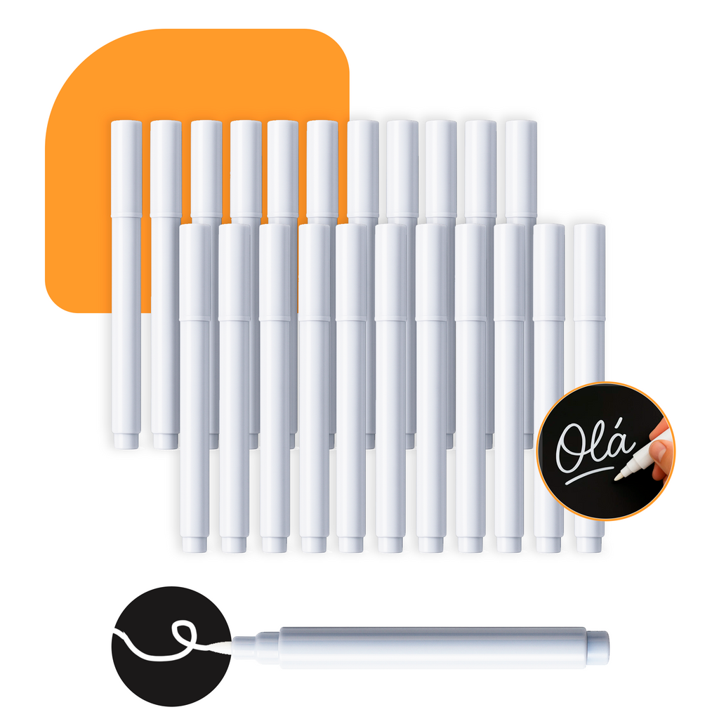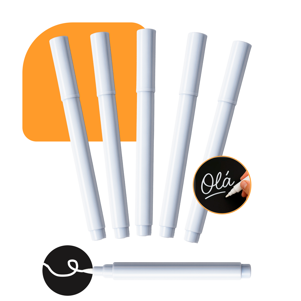 As Canetas de Giz Líquido Branca são perfeitas para quem busca uma escrita limpa, precisa e fácil de remover. Ideais para quadros negros, vidros, espelhos e outras superfícies não porosas, elas transformam qualquer espaço com criatividade e praticidade — e são também a escolha perfeita para personalizar óculos de festa com muito estilo!